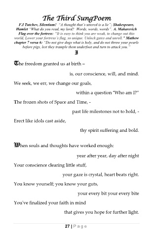 F.I Tutchev, Silentium! “A thought that’s uttered is a lie”; Shakespeare,