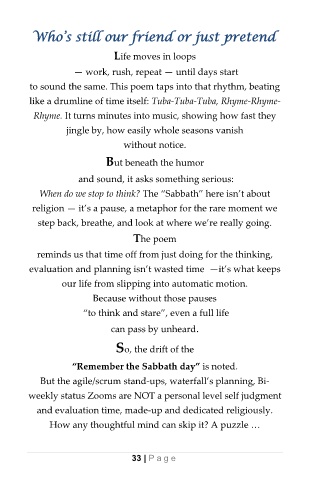 When do we stop to think? The “Sabbath” here isn’t about